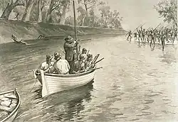 Les premiers explorateurs européens comptaient souvent sur des guides et une assistance autochtones : Charles Sturt employa des envoyés autochtones pour explorer le Murray-Darling ; le seul survivant de l'expédition Burke et Wills a été soigné par des résidents autochtones locaux, et le célèbre explorateur autochtone Jackey Jackey a accompagné son ami malheureux Edmund Kennedy jusqu'au cap York[34]. Dans l'intérieur de l'Australie, les compétences des éleveurs aborigènes sont devenues très appréciées[35].