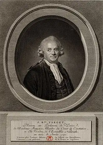 - Opinion de M. Target sur la division du royaume à la séance [de l'Assemblée nationale] du , 1789 ;