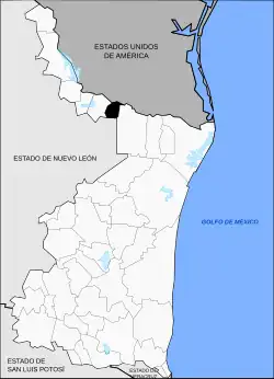 Cette municipalité dépend de la région Norte, appelée aussi Región Fronteriza, qui est une des 6 subdivisions administratives de l'État de Tamaulipas, et regroupe les municipalités de Nuevo Laredo, Guerrero, Mier, Miguel Alemán, Camargo, Gustavo Díaz Ordaz, Reynosa, Río Bravo, Valle Hermoso et Matamoros[4].