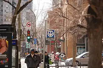 L'édicule A comporte deux sorties. Une vers la Rue de Maisonneuve et l'autre vers la Rue Saint-Mathieu. L'édicule B comporte une seule sortie vers la Rue Guy. Il existe un tunnel qui connecte un pavillon de l'Université Concordia et plusieurs magasins se trouvent sur le chemin.