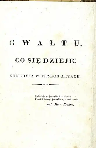 Gwałtu, co się dzieje! est une comédie en trois actes d'Aleksander Fredro de 1826[1].