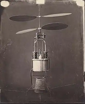 L'hélicoptère (ou la chère hélice) de 1863, des inventeurs français Gustave de Ponton d'Amécourt et Guillaume Joseph Gabriel de La Landelle.