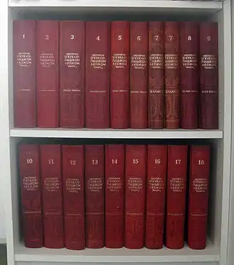 - ↑ (el) « Νεώτερον Εγκυκλοπαιδικόν Λεξικόν Ηλίου (Τόμοι 18) (Παλαιoβιβλιοπωλείο) », sur Stathmos Books (consulté le )