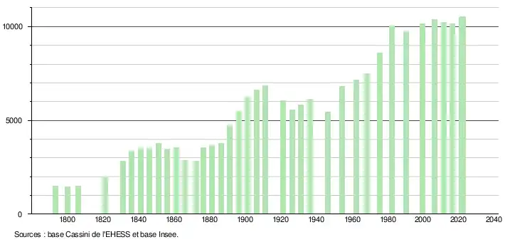 - ↑ Fiches Insee - Populations de référence de la commune pour les années 2006, 2007, 2008, 2009, 2010, 2011, 2012, 2013, 2014, 2015, 2016, 2017, 2018, 2019, 2020, 2021 et 2022.