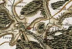 - ↑ L. Tuefferd, Essai sur l’administration gouvernementale du comté de Montbéliard et des Quatre Seigneuries jusqu’en 1793, in Bulletins et mémoires de la société d’émulation de Montbéliard, no 12, 1862, p. 22.