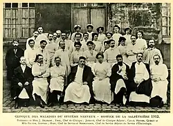 Jules Dejerine (en bas, second à partir de la droite) pose avec le personnel et les chefs de clinique en 1912. Alfred Velpeau (1795-1867) célèbre chirurgien et anatomiste francais