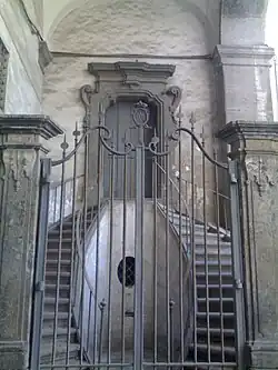 La sacristie ainsi que sa décoration remontent à 1603 et sur sa voûte ont été peintes des fresques par Giovanni Battista Rossi[9].