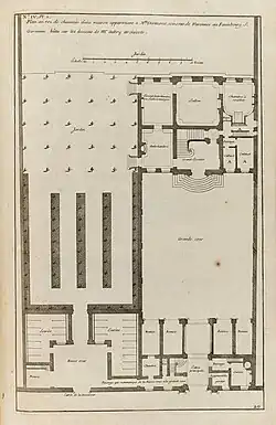 - ↑ L'hôtel de Villeroy dont on parle ici est parfois confondu avec un autre "hôtel de Villeroy" sis rue de l'Université. En effet, Jeanne-Louise Constance d’Aumont de Villequier (1731 – 1816), épouse du 5e duc et duchesse de Villeroy, de qui elle était séparée de biens, quitta ce premier hôtel pour s'installer en un hôtel dit de Rohan-Guéméné, rue de l'Université, que le duc de Rohan lui loua à vie en juillet 1772. La duchesse y résida jusqu'à la Révolution. L'hôtel a été détruit depuis par la percement de la rue du Pré-aux-Clerc
