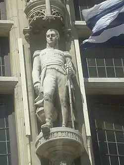 La statue se trouvait sur l'aile droite de l'hôtel de ville, elle fut détruite pendant la Seconde Guerre mondiale.