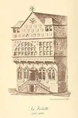 C’est en fait au XIIIe siècle que les magistrats chargés de l'administration communale, désireux d'affirmer leur indépendance à l'égard du prince-évêque, choisissent pour y tenir leurs réunions une maison bourgeoise de la place du Marché, désignée par son enseigne « La Violette ».
