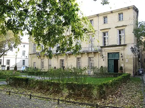 - ↑ « 1 M€ pour la vente de l’ancienne mairie de Montpellier », sur midilibre.fr, (consulté le )