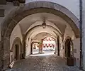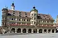 L'hôtel de ville est achevé vers 1377. L'ensemble se compose de deux ailes parallèles séparées par des cours. Les bâtiments massifs de trois étages en pierre de taille de style Renaissance sont couverts de toits à pignons escarpés. La tour de guet sur le pignon ouest, aujourd'hui tour de guet, a été essentiellement construite vers 1200. L'édifice a obtenu sa forme actuelle en 1555-58. Les arcades de la place du marché ont été ajoutées en 1681. Sur la façade, on y voit les armoiries des princes électeurs auxquels incombait l'élection du roi allemand au Moyen Âge. On peut visiter les salles voûtées (Historiengewölbe) aménagées en musée historique.