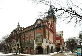 L'hôtel de ville de Subotica a été construit sur la place principale de Subotica entre 1908 et 1912, sur les plans des architectes de Budapest Marcell Komor (1868-1944) et Dezső Jakab (1864–1932), dans le style de la Sécession hongroise[1] ; la décoration intérieure de l'édifice a été achevée en 1912[2]. Il se présente comme un bâtiment monumental réalisant la synthèse entre les éléments architecturaux et décoratifs et la tradition ornementale hongroise mêlée à des solutions architecturales contemporaines[1].