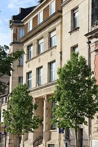 - ↑ « trois verrières : le transport du courrier par chemin de fer, le transport du courrier par avion et par paquebot et le central télégraphique », notice no PM55001556, sur la plateforme ouverte du patrimoine, base Palissy, ministère français de la Culture