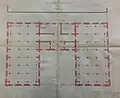 Le corps de bâtiment central comprend au rez-de-chaussée un grand vestibule avec le logement de concierge, une bibliothèque ainsi qu'une pièce pour le dépôt et l'arrivée de nouveaux papiers. L'escalier d'apparat, mène à une grande salle de lecture où le public pouvait consulter les documents, et le cabinet de l'archiviste. Deux salles pour le dépouillement et le classement se trouvent également à cet étage. Le second étage est occupé par le logement de l'archiviste.