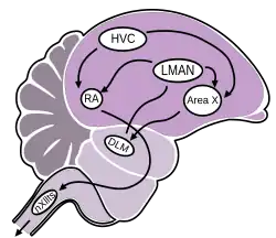 - (en) Cet article est partiellement ou en totalité issu de l’article de Wikipédia en anglais intitulé « HVC (avian brain region) » (voir la liste des auteurs).