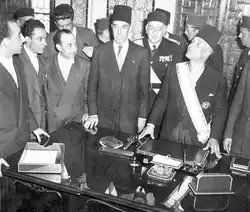 Le , le conseil national du Néo-Destour se réunit pour établir une nouvelle politique vis-à-vis du gouvernement français. Il s'achève en lui accordant un « préjugé favorable » et par l'élaboration d'une série de revendications jugées minimales dont il attend une satisfaction rapide. À la fin de la réunion, Bourguiba est envoyé à Paris pour exposer la plate-forme de son parti[68]. En France, il se rapproche des jeunes étudiants nationalistes tels que Habib Thameur, Hédi Nouira et Slimane Ben Slimane[69]. De même, il rencontre Pierre Viénot, sous-secrétaire d'État aux Affaires étrangères, le [70]. Cette entrevue est très mal vue en Tunisie : c'est pourquoi leurs entrevues ultérieures se font en secret. Mais la prudence des autorités françaises s'oppose aux espoirs des militants tunisiens et certains pensent même qu'il s'agit d'une illusion[71]. De retour à Tunis, en septembre, le climat politique a changé avec la restauration des libertés, ce qui permet l'expansion du Néo-Destour qui voit le nombre de ses jeunes militants augmenter[72].
