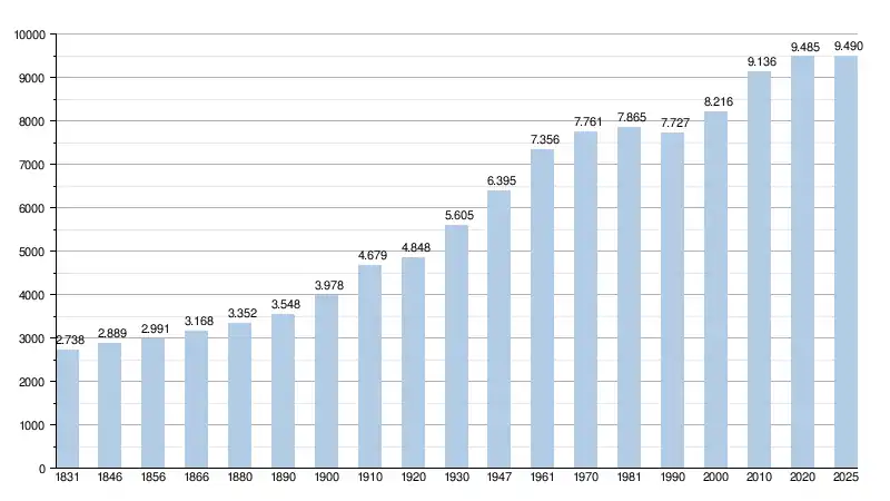 • Source : DGS - Remarque: 1831 jusqu'à 1981=recensement; depuis 1990=nombre d'habitants chaque 1er janvier[4]