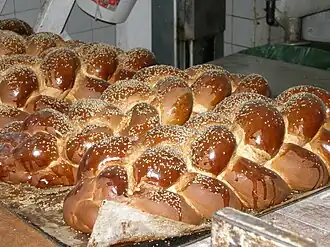 À Rosh Hashana, le Nouvel An juif, des raisins, du miel, des pommes, peuvent être rajoutées à la pâte qui n'est pour la circonstance pas tressée, mais enroulée, afin de symboliser le cycle de l'année. La ressemblance avec la brioche est particulièrement frappante.
