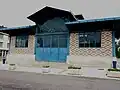 Les murs sont constitués jusqu'aux fermes de la charpente d'un appareillage en briques à trois tons et décor losangé et continués par-delà par des plaques en verre armé.