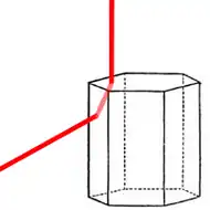 L'angle entre le rayon incident et celui qui émerge du cristal ne peut être inférieur à 46 degrés dans ce cas; c'est pourquoi le halo a la forme d'une couronne de 46 degrés de rayon, très définie en son bord intérieur et diffus en son bord extérieur. Cette zone diffuse est créée par la traversée du cristal par le rayon sous différents angles autres que 46 degrés. Le grand cercle est particulièrement coloré avec les arcs supérieurs tangents[3],[4].