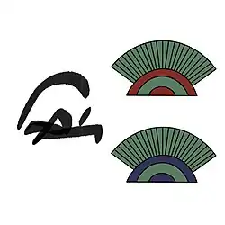 Il représente le halo du soleil à l'aube peut être au dessus d'une colline (colline ḫˁ ?). Le nombre de cercles concentriques peut varier et ils peuvent être bleu et ou parfois rouge. Il remplit 1/4 ou 1/2 cadrat. Il est translittéré ḫˁ, ḫˁj ou ḫˁw.