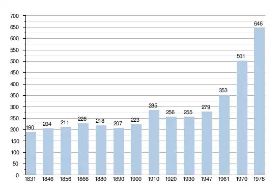 - Sources : INS, Rem. : 1831 jusqu'en 1970 = recensements, 1976 = nombre d'habitants au 31 décembre[2].