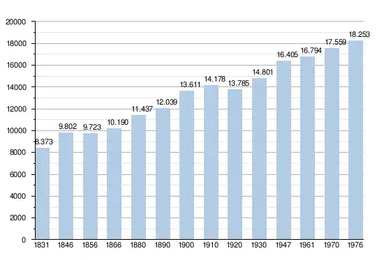 - Source : DGS - Remarque: 1831 jusqu'à 1981=recensement; depuis 1990=nombre d'habitants chaque 1er janvier[5]