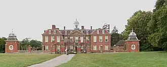 La maison principale est de style Queen Anne et a deux étages plus un grenier. Il a une maçonnerie en pierre de taille rouge flamande, avec un toit en croupe en tuiles et de grandes cheminées en briques. La maison principale est classée par English Heritage le 29 décembre 1952 et est un bâtiment classé Grade I.