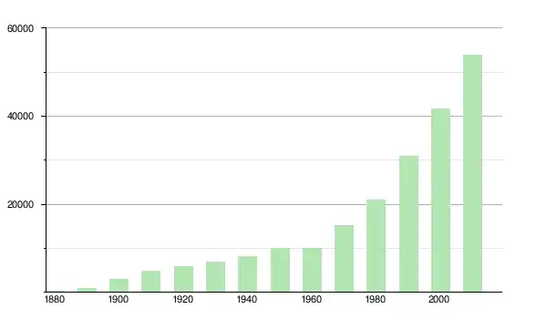 | 1980 | 20 958 | ▲ +38,07 % | |