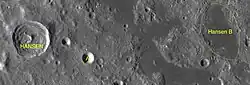 Par convention, les cratères satellites sont identifiés sur les cartes lunaires en plaçant la lettre sur le côté du point central du cratère qui est le plus proche de Hansen.