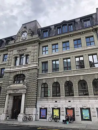 Le bâtiment principal (rue du Général Dufour 2) est celui de l’ancienne École de commerce (1901-1917) édifiée par l’architecte du Grand-Théâtre Jacques-Élysée Goss[9],[10]. Il a ensuite été occupé successivement par l’École des Beaux-Arts et la HEAD (1969-2021). Il abrite actuellement plusieurs salles de concert dont une black-box, un espace dédié aux musiques du monde, une salle de cinéma et de nombreuses salles de cours. La salle de la Bourse (rue du Grütli 5) occupe les locaux de l’ancienne Bourse de Genève[11],[12]rénovée par Goss (1915-1986) qui ont été transformés en une salle d’audition et en plusieurs salles de cours. Les immeubles voisins de la rue Petitot 8-10 abritent, entre autres, le Centre de musique électroacoustique et une partie des activités du département de Musique ancienne. Des salles de cours sont aussi logées rue du Stand 58. Le Centre de percussions se trouve sous l’esplanade Uni-Mail (boulevard du Pont-d’Arve 40).