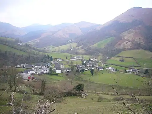Pour la période 1971-2000, la température annuelle moyenne est de 12,8 °C, avec une amplitude thermique annuelle de 13,7 °C. Le cumul annuel moyen de précipitations est de 1 676 mm, avec 12,5 jours de précipitations en janvier et 10,8 jours en juillet[16]. Pour la période 1991-2020, la température moyenne annuelle observée sur la station météorologique la plus proche, située sur la commune de Licq-Athérey à 3 km à vol d'oiseau[17], est de 13,1 °C et le cumul annuel moyen de précipitations est de 1 528,1 mm[18],[19]. Pour l'avenir, les paramètres climatiques de la commune estimés pour 2050 selon différents scénarios d'émission de gaz à effet de serre sont consultables sur un site dédié publié par Météo-France en novembre 2022[20].