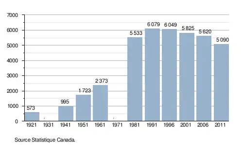 b. Statistique Canada, Annuaire du Canada, Ottawa, Gouvernement du Canada, , 1396 p. (lire en ligne), p. 200. - ↑ Le nombre de ménages privés correspond au nombre de logements privés occupés par des résidents habituels.