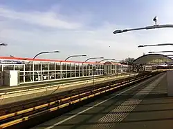 La station située en aérien dispose d'un accès au niveau du sol, sous le viaduc. Elle est équipée, notamment, d'automates pour l'achat ou la recharge de titres de transport et d'un ascenseur pour l'accessibilité des personnes à la mobilité réduite[2].