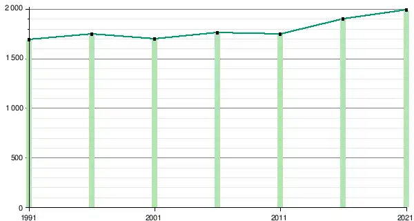 5,0 %) entre 2016 et 2021. La densité brute de la population est de 12,7 habitants/km2 pour l'ensemble de la municipalité.