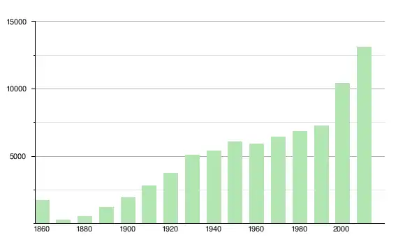 | 1950 | 6 103 | ▲ +13,42 % | |