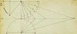 Plus loin, on trouve une épure de géométrie descriptive pour construire un cadran solaire horizontal pour la latitude de Bruxelles[7]. Cette épure est antérieure de plus de 75 ans à une épure du même type d' Albrecht Dürer parue dans son ouvrage Instructions pour la mesure à la règle et au compas de 1525[8].
