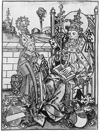 À Ratisbonne, l'imprimerie permet pour la première fois de produire un missel, un rituel et un bréviaire[2] ; en 1480, l'évêque oblige les prêtres à acheter ce bréviaire[4]. Il y a une gravure sur bois de Michael Wolgemut qui présente l'évêque agenouillé.