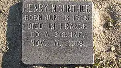 - ↑ Stèle à la mémoire d'Henry Gunther, sur le site verdun-meuse.fr. Consulté le