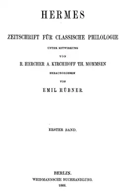 - (de) Cet article est partiellement ou en totalité issu de l’article de Wikipédia en allemand intitulé « hermes (Zeitschrift) » (voir la liste des auteurs).