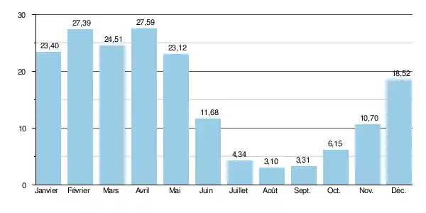 La station du Peyrat, localité du département de l'Ariège, située sur l'Hers à son débouché de la montagne dans le piémont pyrénéen[8], donne un aperçu très représentatif de l'hydrologie de la partie pyrénéenne du bassin.