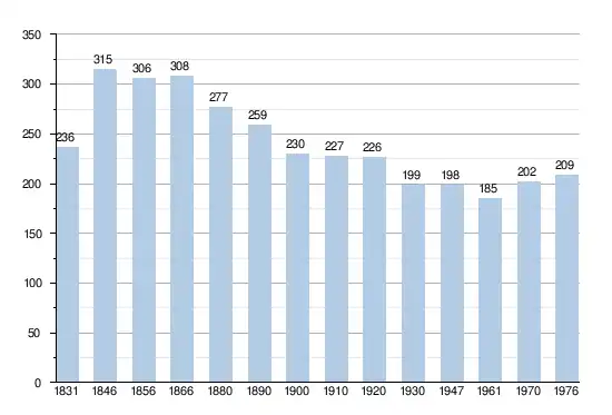 - Sources : INS, Rem. : 1831 jusqu'en 1970 = recensements, 1976 = nombre d'habitants au 31 décembre.