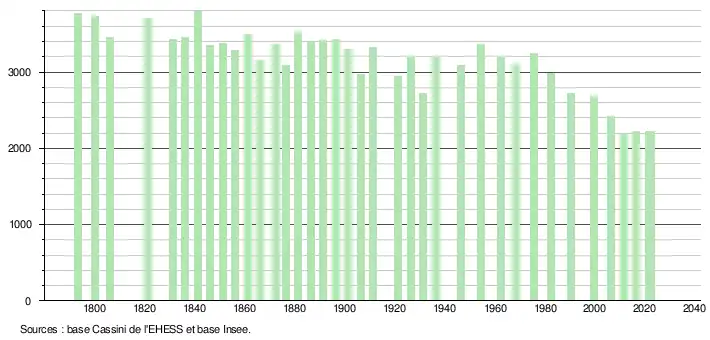 - ↑ Fiches Insee - Populations de référence de la commune pour les années 2006, 2007, 2008, 2009, 2010, 2011, 2012, 2013, 2014, 2015, 2016, 2017, 2018, 2019, 2020, 2021 et 2022.