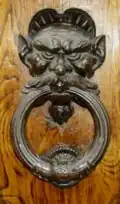 - ↑ « Marteau », dans le Dictionnaire de l'Académie française, sur Centre national de ressources textuelles et lexicales, sens 2 : « Marteau de porte : anneau ou battant de métal articulé, fixé à l'extérieur d'une porte d'entrée, et avec lequel on frappe pour se faire ouvrir ».