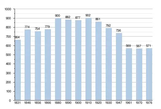 - Source: DGS, 1831 à 1970=recensements population, 1976= habitants au 31 décembre