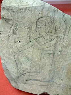 Il représente un homme accroupi, en génuflexion et les deux bras vers le ciel en signe d'adoration.