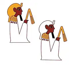 Le hiéroglyphe égyptien A42 (pharaon assis tenant un flagellum), est classifié dans la section A «L'Homme et ses occupations» de la liste de Gardiner; il y est noté A42.