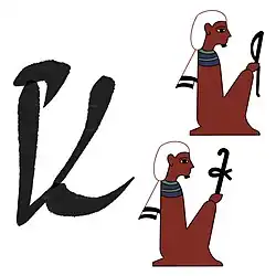 | C'est un idéogramme du terme mnjw | « berger, pâtre »[1]. |
