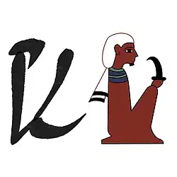 Il représente un homme assis, vêtu d'un manteau portant généralement un khat et tenant un couteau. Il est translittéré jry ou sȝw.